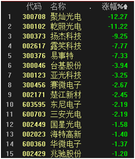 9月15日,第三代半导体相关概念股表现整体不佳,不少个股出现大跌,其中聚灿光电在股价连续九日上涨之后迎来首阴,股价大跌12.27%。乾照光电股价距离9月9日的最高价14.55元/股,已向下调整了近四成。