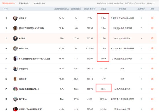 在抖音直播日榜(9月14日数据)中,直播销售额排名第5名的商家,粉丝量仅3万。