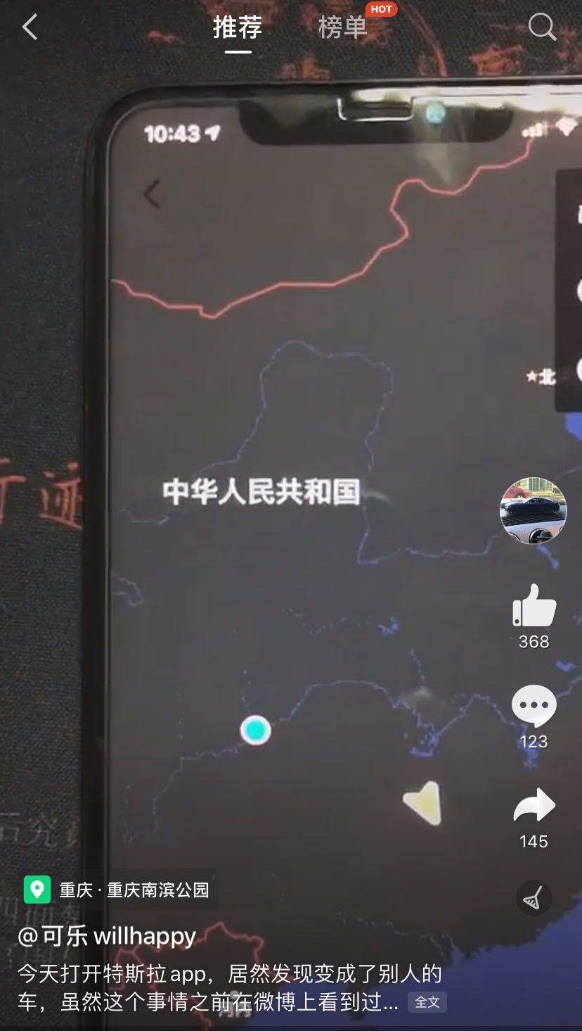 15日上午,金先生打开手机里的特斯拉App,看到显示的车辆不是自己的,车辆定位在湖南省衡阳市。而App上的车辆识别码却仍是自己的,且自己实际的定位在重庆市。金先生意识到,这是“串到了别人的车”。