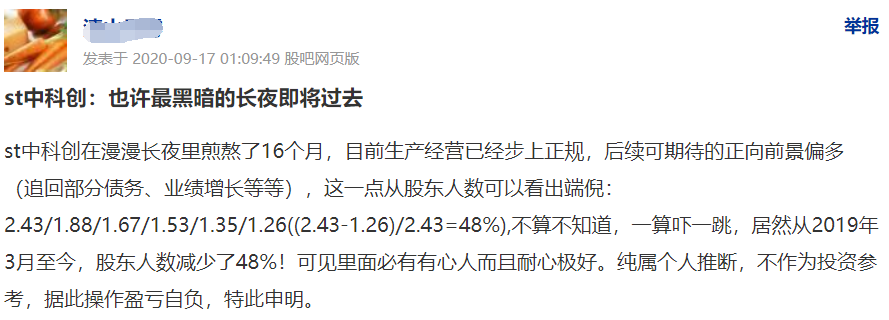 不少网友表示,ST中科创最黑暗的长夜即将过去。