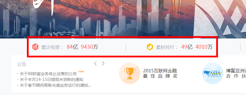 据此前88财富网官网显示,累计投资额(截至2018年12月)约84.94亿元,累积兑付约49.40亿元。