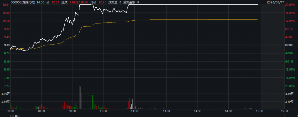 午后涨停!龙腾光电今日的表现确实“龙腾虎跃”,收涨于10.91元/股。