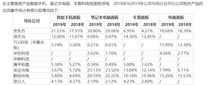 从所属行业来看,公司处于信息技术大类下的电子设备领域。据招股书披露,京东方、深天马、TCL科技、群创光电、华映科技等都是龙腾光电的可比上市公司。