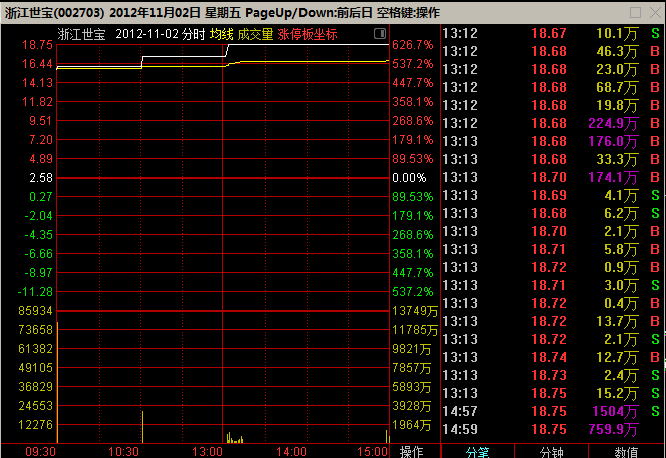这样的落差下,迎来了当时A股最火爆的新股首秀现场:2012年11月2日,处于集合竞价阶段的浙江世宝,股价已高企在15元之上。接下来,高换手率停牌,复牌后因盘内振幅达10%再次临停,其后振幅达20%三度停牌。