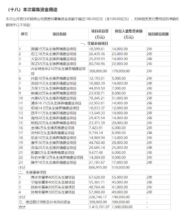 9月13日晚,牧原股份披露公开发行可转债预案,拟募资总额不超过100亿元,投资于23个生猪养殖项目,4个生猪屠宰项目,偿还银行贷款及补充流动资金。