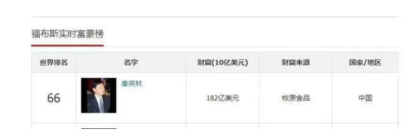 在今年8月份,他曾位于福布斯全球实时富豪榜第27位。由于身价缩水,秦英林的排名已经下滑至第66位。