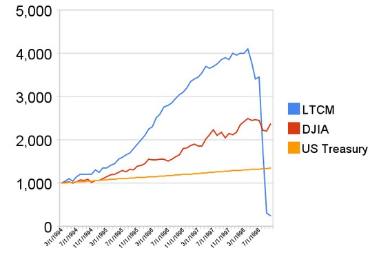 长期资本管理公司被认为是“每平方英寸智商密度高于地球上其他任何地方”,公司成员包括哈佛大学教授罗伯特。C。默顿与迈伦·斯科尔斯,他们因为期权定价公式获得诺奖;戴维·马林斯,美国财政部在任副部长兼美联储副主席。
