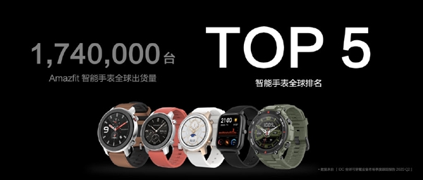 不仅如此,华米科技旗下的Amazfit手表全球出货量高达174万台,同比增长48%,全球智能手表排名第五。