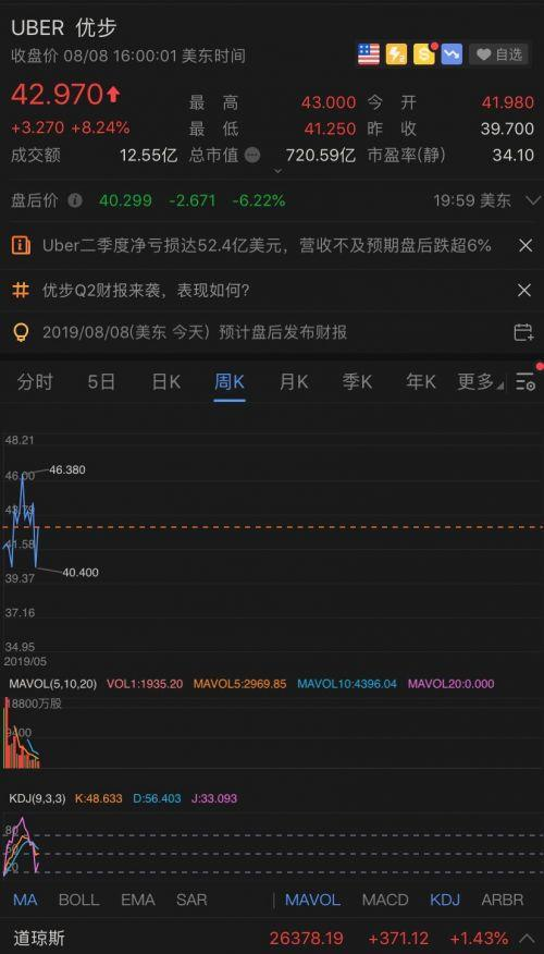 财报公布后,Uber盘后一度跌超12%。