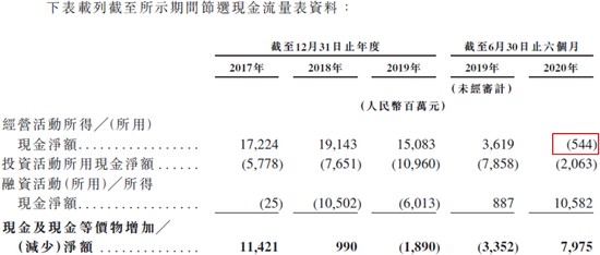 今年上半年,海尔智家经营活动现金净流出为5.4亿元人民币,而去年同期则为净流入36.2亿元人民币。在报告期2017-2019年,公司经营活动现金净流入则均超过150亿元人民币。
