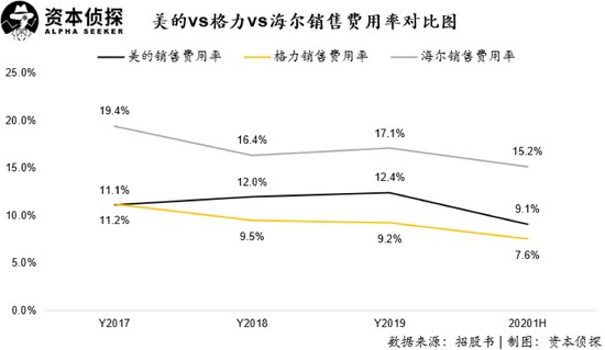 在过去几年,海尔智家整体的销售费用率一直在15%以上,而美的和格力目前已经将销售费用率控制到10%以下,差距明显。而这5个点的差距,对于年收入超2000亿元的巨头来说,就意味着利润端100亿元人民币的差别。