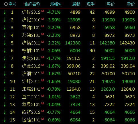 9月24日,国内期市开盘,沪银跌近5%,沪金跌近2%;有色走跌,沪铝跌近4%,沪锡跌逾2%。(新浪财经)