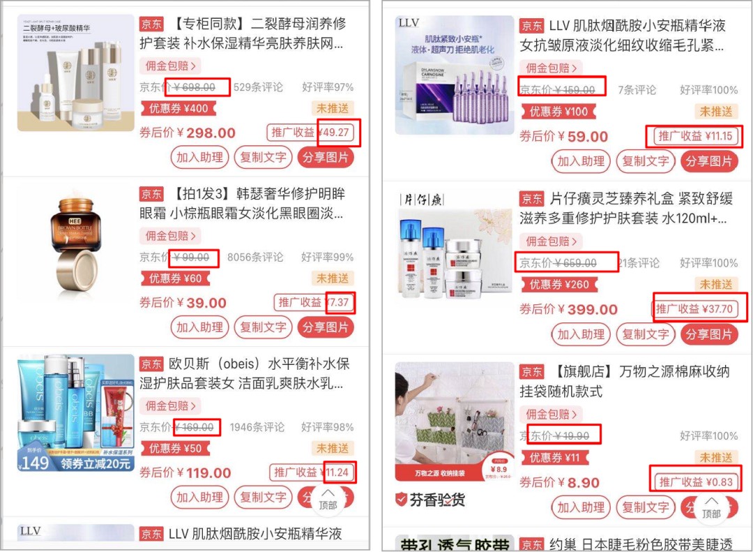 翻看芬香的商品列表,不难发现,原价和券后价差距越大,佣金就越高: