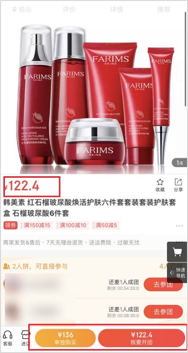 还有这套在代理群里推的很火热的护肤品,据说原价也 1000+,芬香券后价“不足三百,优惠好大”。