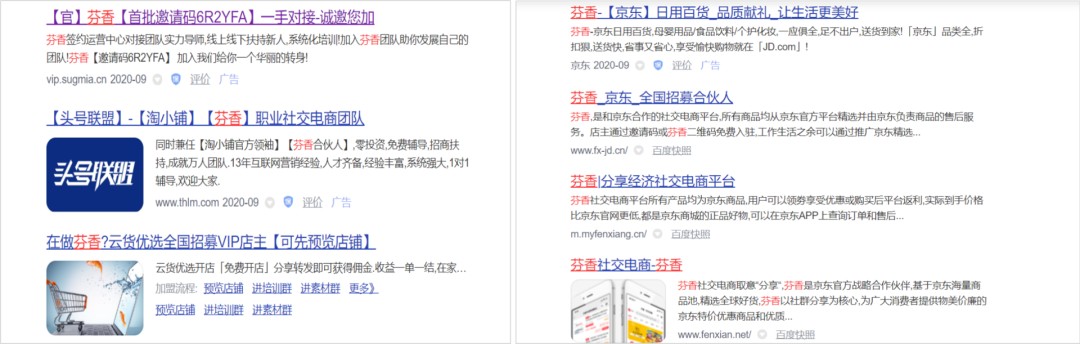 你去百度搜索一下“芬香”,第一页的结果基本都是代理们的竞价排名,点进去就是一个粗制滥造的拉人头网页: