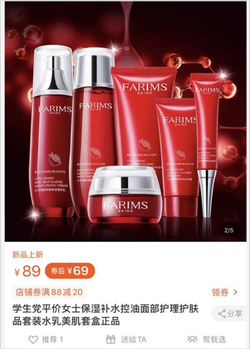 以我妈当时心动的那套杂牌化妆品为例,芬香表示这个商品的原价是 1089 元,现在打 3 折只要 289: