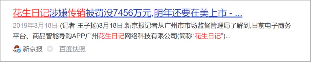 近几年,国家严打传销,芬香的同行云集、花生日记都被罚过: