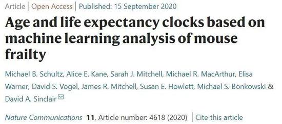 [1] Michael B。 Schultz et al, (2020) Age and life expectancy clocks based on machine learning analysis of mouse frailty。 Nature Communications。 DOI: https://doi.org/10.1038/s41467-020-18446-0[2] On the Clock。 Retrieved Sep。 16, 2020, from https://hms.harvard.edu/news/cloc