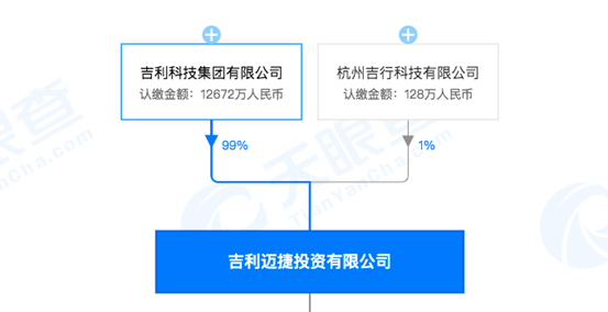天眼查数据显示,吉利迈捷投资有限公司的大股东为吉利科技集团有限公司,持股比例达到99%,实际控制人为吉利控股董事长李书福。