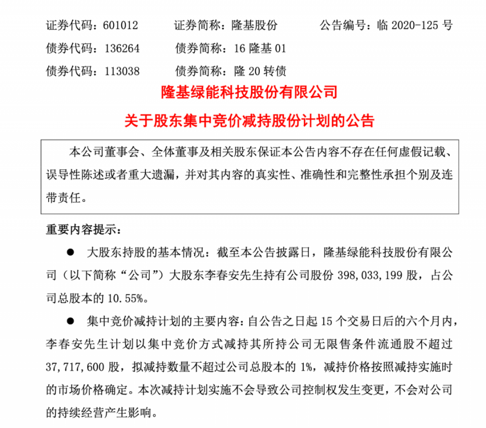 股价迭创新高的隆基股份,一则减持公告引发市场关注。