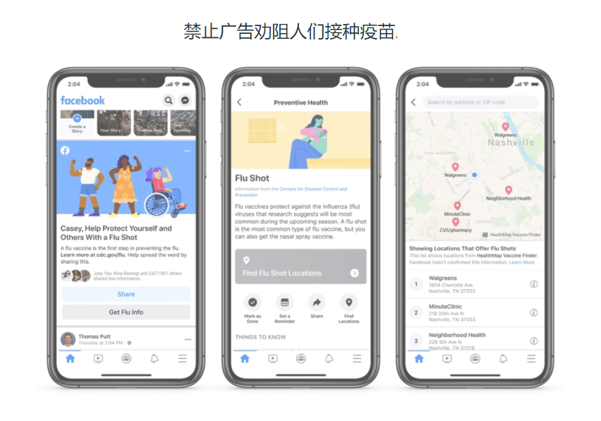 “我们不希望疫苗接种广告出现在Facebook平台上。——美国Facebook公司:禁止宣传疫苗广告” 。
