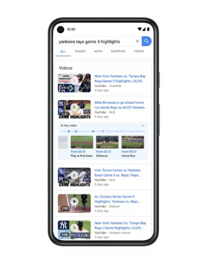 最后,该公司还开始使用计算机视觉和语音识别来自动标记并将视频分成若干部分,这是它已经提供的现有章节工具的自动化版本。例如,烹饪视频或体育游戏可以被解析并自动划分为章节(谷歌已经提供给创作者手工操作),然后可以在搜索中浮现。这与该公司现有的工作类似,即在搜索中显示特定的播客情节,而不是只显示一般的推送。
