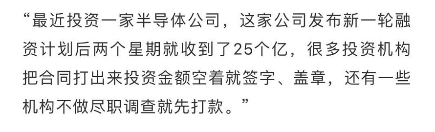 现在除了相关方面的巨额补贴外,还有大量投资机构排队给这些转型做半导体的企业送钱,有公司不到半个月就收到了25亿。