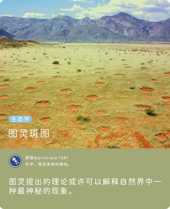另外,根据图灵斑图的形成原理,生命力较强的植被应当聚集在一起,而生命力较弱的植被则会随机散布。实地观察结果与这一假设相符,进一步证明了仙女圈可以被图灵斑图解释。