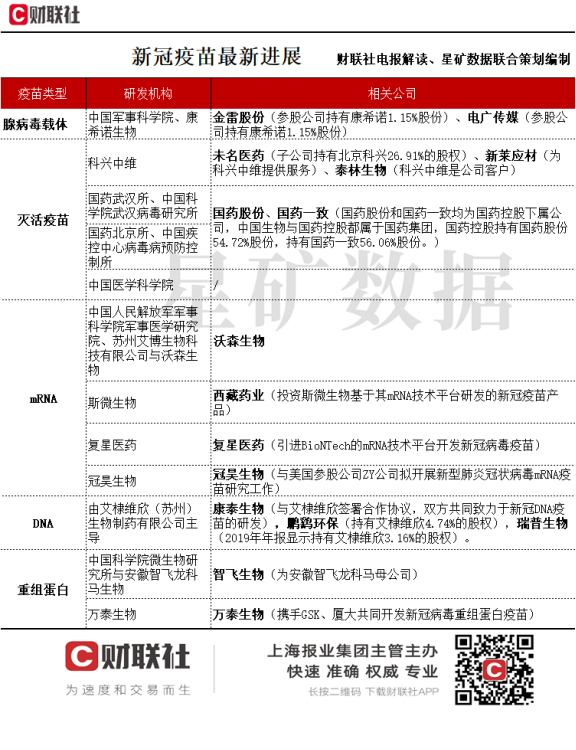 财联社电报解读栏目此前联合星矿数据梳理新冠疫苗最新进展,具体如下: