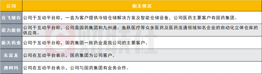 财联社此前梳理与国药集团有业务联系的上市公司名单,具体如下: