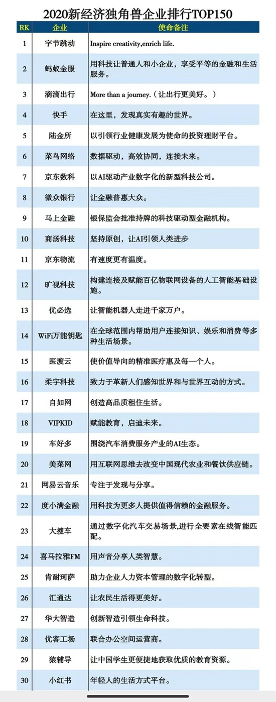 在中科院《互联网周刊》公布的“2020新经济独角兽企业150强”榜单中,蚂蚁集团、陆金所、京东数科分列第2、5、7位,这份榜单上的其他超级独角兽们,也已经走在上市的路上。