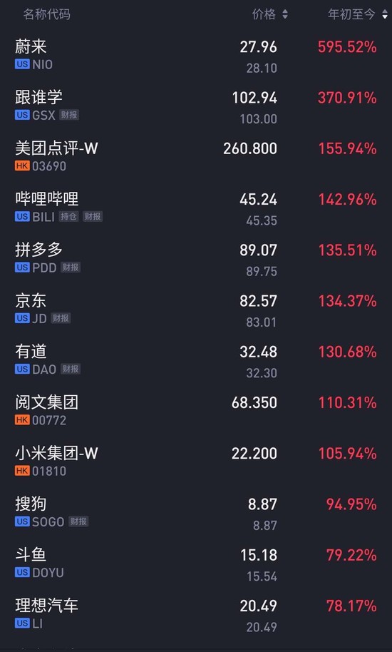 这让已经上市的新经济公司们狠狠捞了一波油水。依年初至今涨幅来看,多家互联网公司股票涨幅超过100%,如蔚来、人人网、跟谁学、贝壳、京东、拼多多、B站、网易有道、美团点评、小米等,买入以上任一家公司的股票并持有一年以上,都能获得非常高的投资回报。