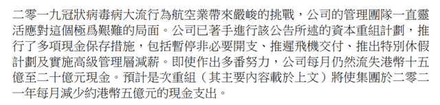 早在本次大规模裁员之前,国泰航空就已经尝试自救。今年六月,国泰航空公布了一项资本充足计划,共集资390亿港元,其中香港政府投资273亿美元,用于认购优先股和提供过渡性贷款。