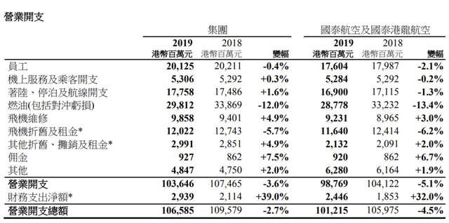 不过,疫情之前国泰航空的员工成本占比并不大。年报显示,国泰航空2019年员工开支为201.25亿港元,燃油、飞上服务及乘客、着陆停泊及航线、飞机维修、飞机折旧及租金等运营开支达到747.56亿港元,是人员开支的3.7倍。