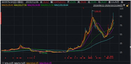 值得注意的是,2020年以来,正川股份的股价堪称暴涨。今年初,正川股份的股价约17.66元/股,至10月20日,正川股份的股价已达94.72元/股,累计涨幅达436.35%。