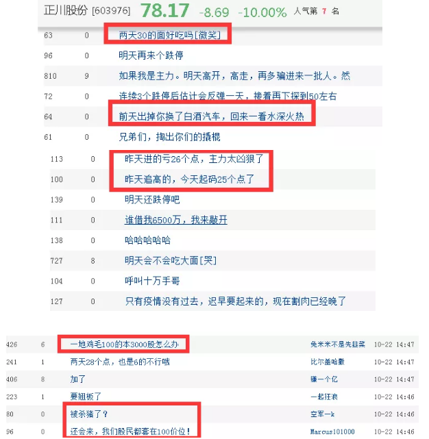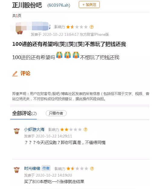 2天的闪崩,让正川股份股吧里的投资者不淡定了,好多股民都在哭诉自己2天亏了多少钱。