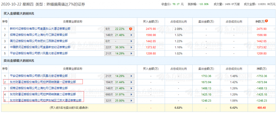 10月21日盘后龙虎榜数据也显示,“拉萨天团”也有大笔资金卖出。