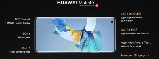 除了核心芯片,此次,华为Mate40系列采用曲面屏设计,其中Mate40 Pro和华为Mate40 Pro+延续曲率为88°超曲面环幕屏,Mate40则配备68°的双曲面屏。