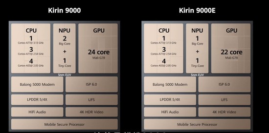 麒麟9000与麒麟9000E对比数据