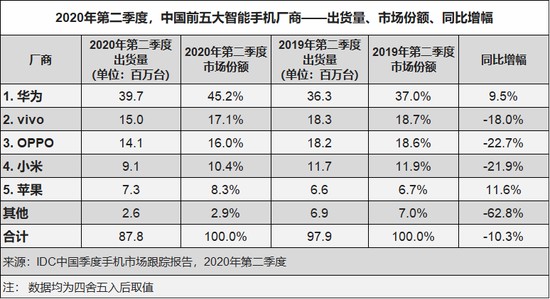 2020Q2中国手机市场情况,图源自IDC