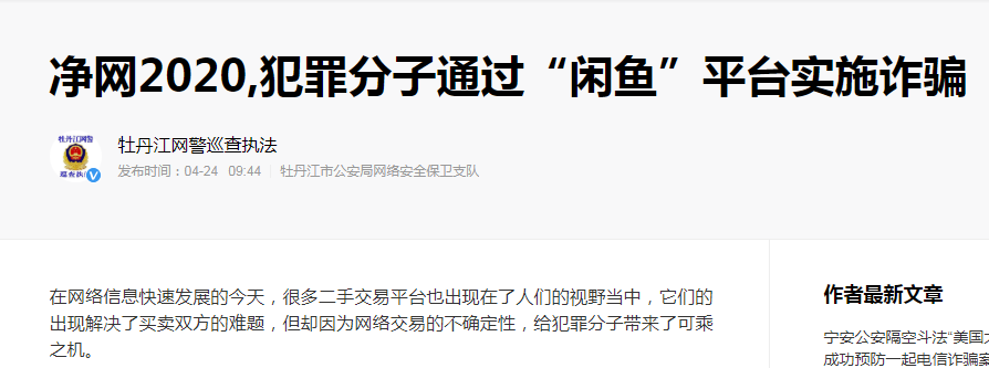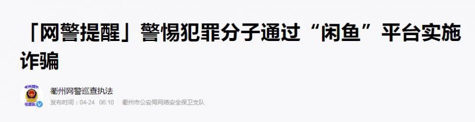 值得一提的是,在“净网2020”行动中,犯罪分子涉嫌利益“闲鱼”平台实施诈骗被点名,而多地网警对此都曾发出过警示。