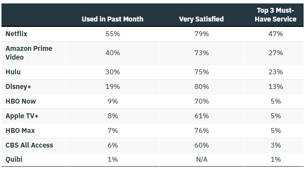 Variety的数据显示,Quibi的使用率在主流流媒体平台中垫底