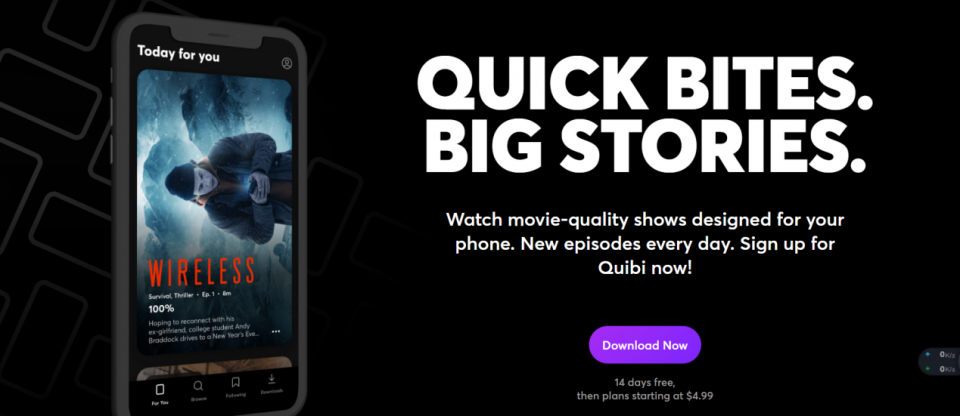 但是意料之外的成功却没有到来。上线第一天,Quibi的下载量仅有30万;上线一周之后的4月14日,该公司宣布首周获得170万次应用下载。