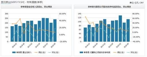 从三季报来看,贵州茅台前三季度营收672.14亿元,同比增10.31%;净利润338.27亿元,同比增11.07%。