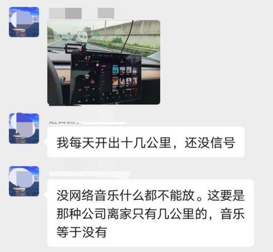 不仅如此,10月22日,多位车主在特斯拉车主群中反映:“车辆开出去后,经常会出现没有信号,没网的情况。”
