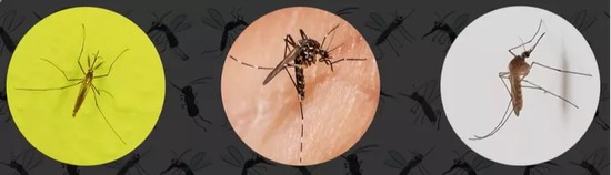 为了“师蚊长技以制蚊”,科学家对地球上三千多种蚊子进行了分类,会对人类进行叮咬的主要有三种蚊子,分别是:按蚊Anopheles、伊蚊Aedes(后文实验用蚊)、库蚊Culex,它们依次长下面这样: