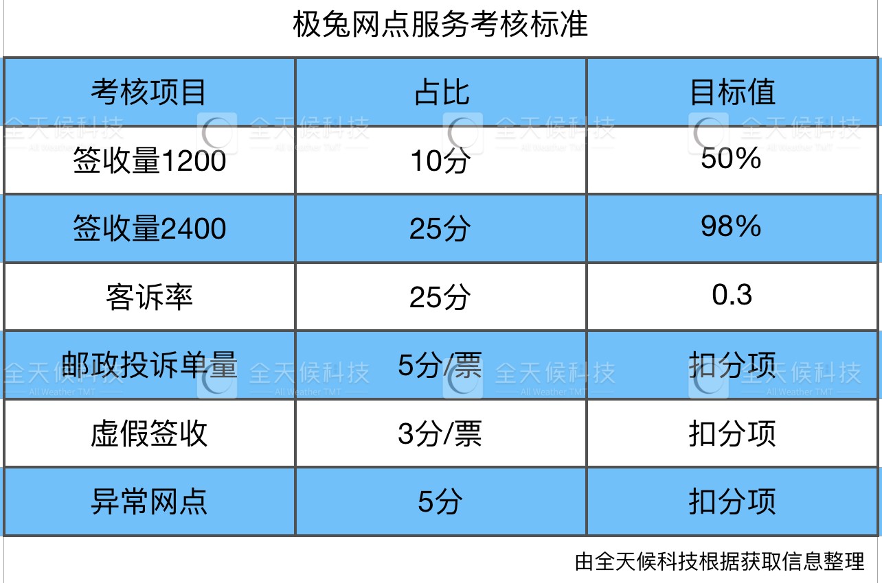 例如,日订单签收量达到1200的目标完成50%,即可获得10分;客诉率不大于0.3能得到25分;相反,邮政投诉单、虚假签收、异常网点等问题,都属于扣分项,按照票单量相应减分。最后,根据总分进行奖惩。