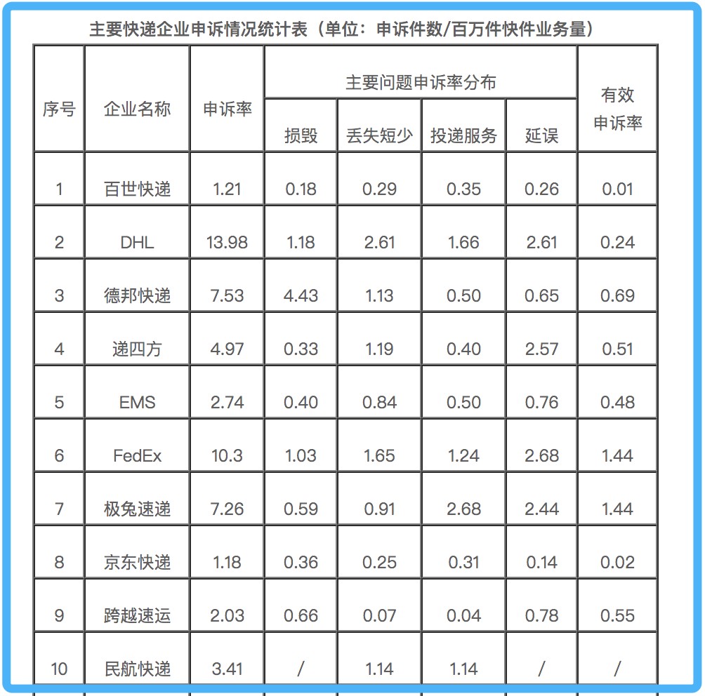 9月主要快递企业胜诉情况统计表(图片来源:国家邮政局)
