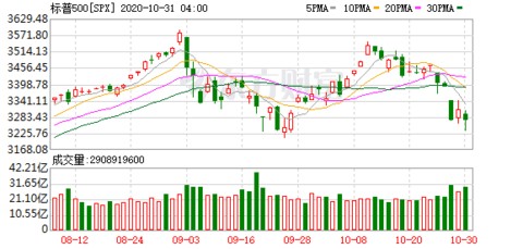 今年10月,道指累计跌幅4.6%,标普500指数和纳指累计跌幅2.8%和2.3%。截至10月30日,标普500指数收报3269.96点,三个月累计走势由涨转跌,微跌0.04%。距离美国总统大选尚余1个交易日,周一市场能否给出答案?