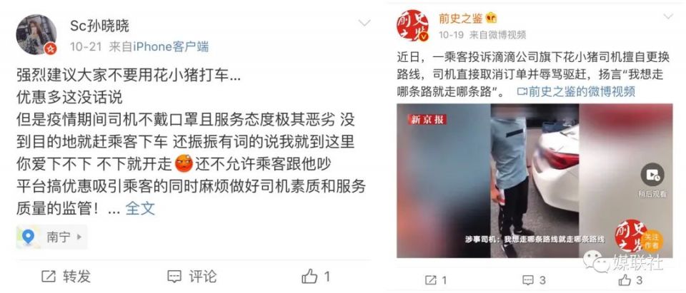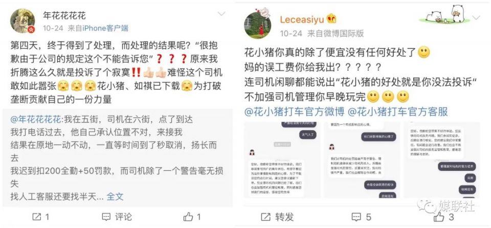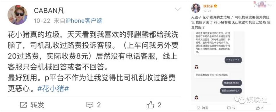 因为,自花小猪打车上线以来,用户关于花小猪打车的各种投诉就接连不断:有的花小猪司机威胁乘客收小费、有的花小猪司机中途甩客、有的花小猪司机半路加钱、有的花小猪司机不戴口罩、有的花小猪司机擅自取消订单、有的花小猪司机先收停车费、有的花小猪司机乱收过路费、有的乘客投诉被“自动回复”、有的乘客表示“投诉无门”……甚至有的花小猪司机在跟乘客闲聊时得意地表示:花小猪的好处就是你没法投诉!